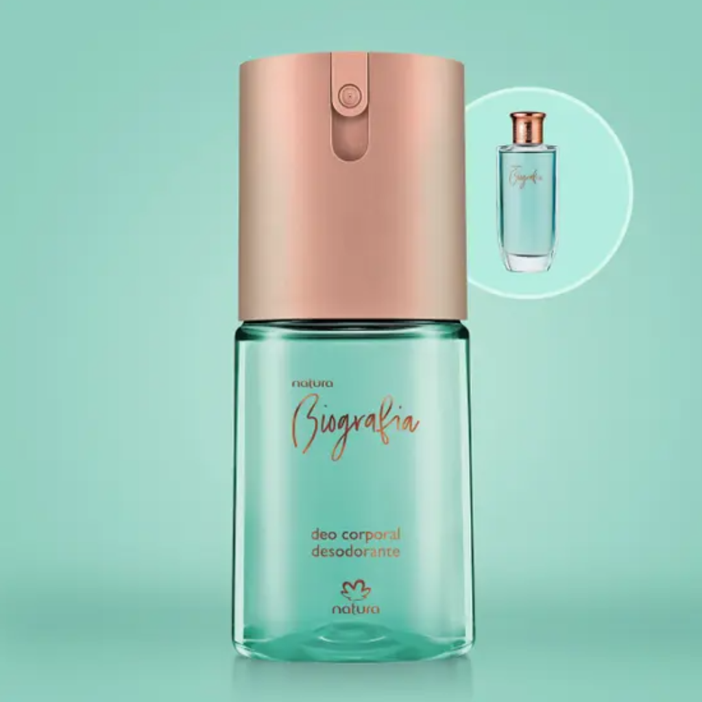 Não há nada melhor que a sensação de bem-estar e frescor que você sente quando se cuida. O Desodorante Corporal Biografia Feminino foi desenvolvido para manter você protegida e perfumada ao longo do dia, com fragrância inspirada em um dos maiores sucessos da perfumaria Natura. Sua fórmula combina tecnologia desodorante que protege contra os odores da transpiração com perfumação que é perfeita para o seu dia a dia. Sensação de frescor e bem-estar para o corpo todo. Este produto possui refil.