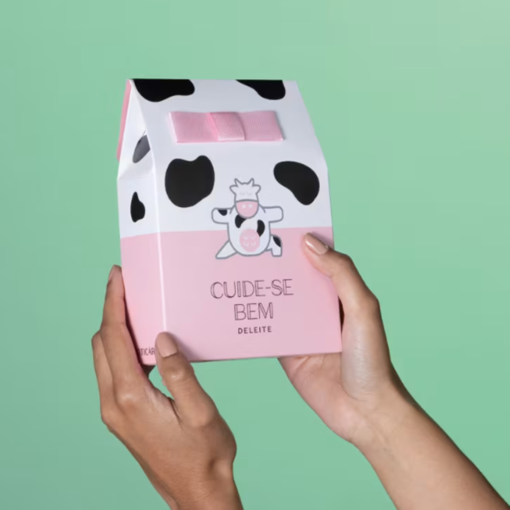 Com a famosa vaquinha estampando a embalagem, a CaixaPara Presente Cuide-se Bem Deleite entrega muito charme e segurança para os itens: Nas cores branco e rosa, vem com uma fita delicada e as pintas da vaquinha de Cuide-se Bem Deleite.